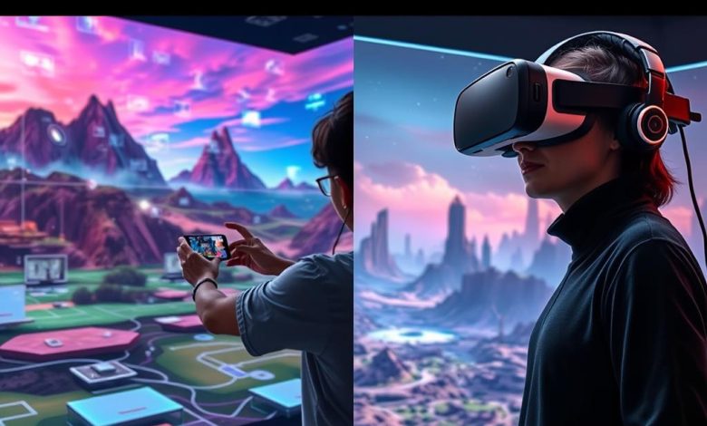 AR mixes virtual and real worlds in gaming and entertainment. Players dive into virtual spaces and interact with digital objects. This mix creates amazing AR gaming experiences that feel real.