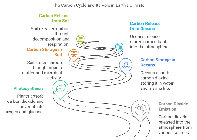 The carbon cycle plays a critical role in maintaining the balance of the Earth’s climate. Carbon dioxide (CO₂) is one of the major greenhouse gases that trap heat in the Earth’s atmosphere. This natural greenhouse effect keeps Earth warm enough to support life. However, human activities, such as deforestation and burning fossil fuels, have disrupted the carbon cycle, leading to an excess of CO₂ in the atmosphere and contributing to climate change.